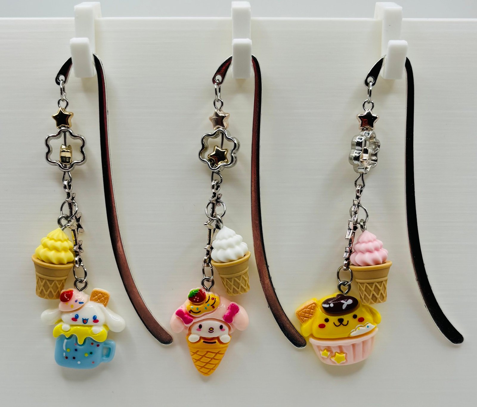 The Sanrio Ice Cream Adventure Bookmark is a delightful collectible featuring your favorite Sanrio characters dressed in whimsical ice cream-themed outfits. This charming accessory showcases pastel illustrations, playful dessert details, and a glittery embossed finish with a metallic ice cream cone. Perfect for marking your place with a touch of kawaii magic, it’s a sweet treat for fans of storytelling, stationery, and Sanrio surprises.