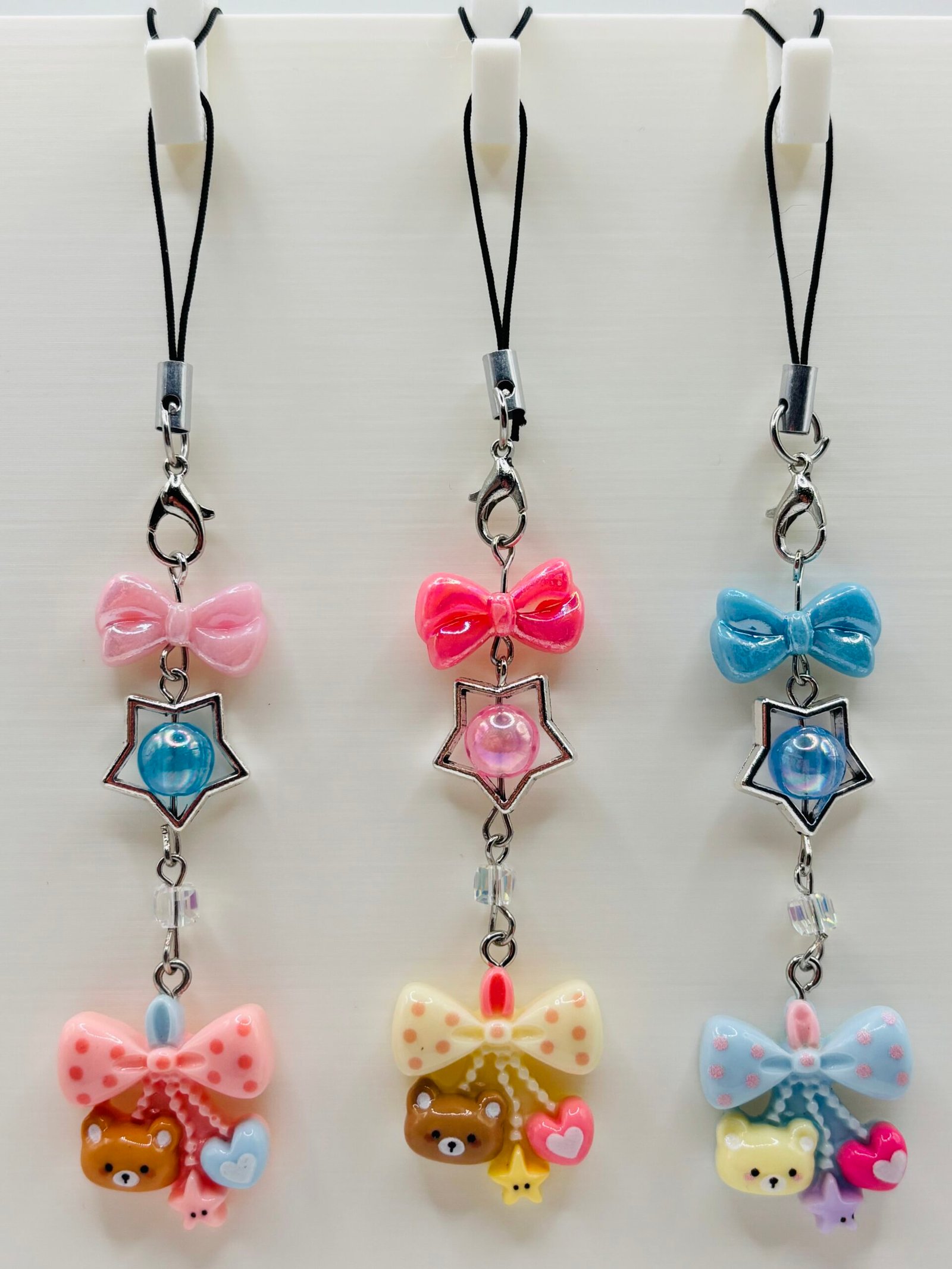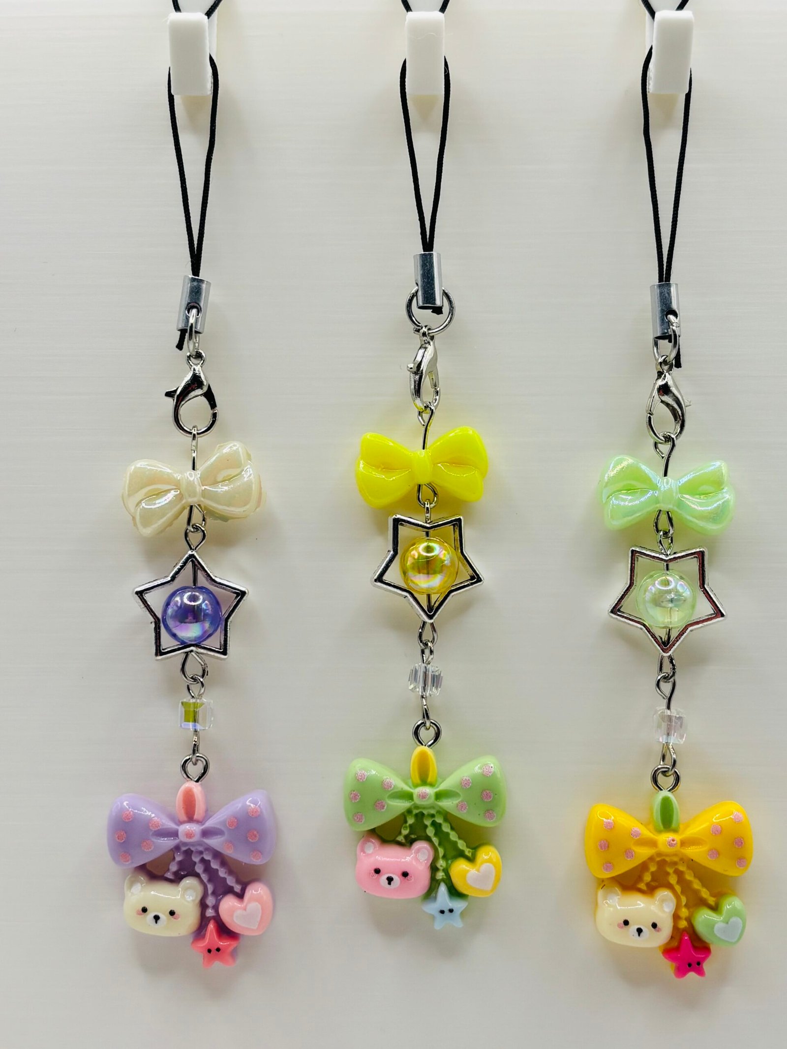 Delightful phone accessories featuring pastel bows, glossy beads, and dangling bear companions adorned with heart and shape accents. Each piece is lovingly designed to bring joy and personality to your phone, planner, or pouch. Whether you’re gifting, collecting, or simply treating yourself, these ribbon-tied treasures are a sweet reminder that magic lives in the details.